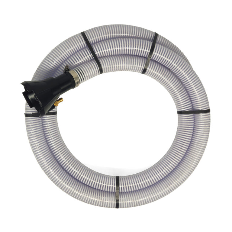 Simply attach to your pressure washer wand and pull the trigger. The zero-degree spray creates a venturi that draws up to 44 gallons per minute (2500 gallons per hour) of liquid waste and slurry solutions through the 15 ft discharge hose to a transfer tank. Debris as large as 3/4-inch will can be carried through the discharge hose, making this a viable solution for numerous industries such as food processing, agricultural, and heavy equipment repair facilities.