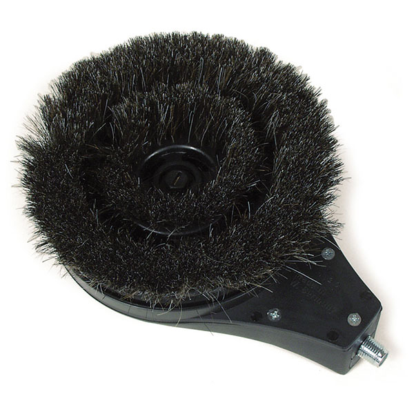 When attached to a water source, the dual brush heads rotate to help remove stubborn, caked on grime. Both brush heads rotate the same direction.