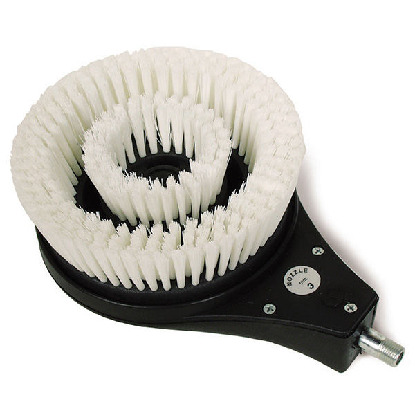 When attached to a water source, the dual brush heads rotate to help remove stubborn, caked on grime. Both brush heads rotate the same direction.