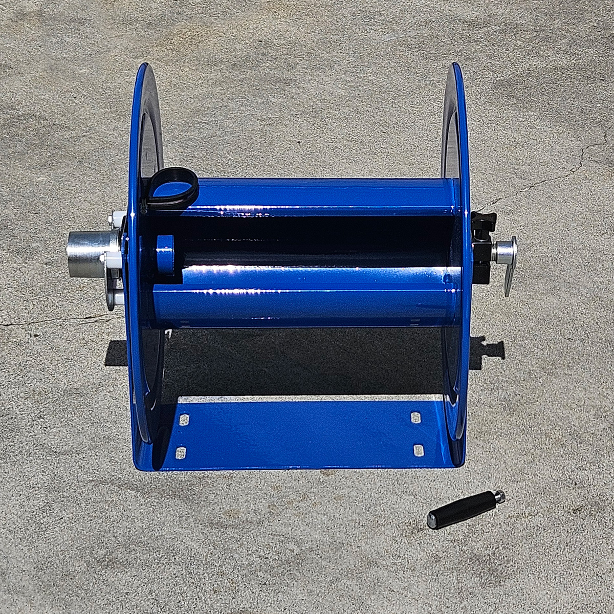 Spring retractable hose reel, 50′ capacity for 3/8″ high pressure hose.