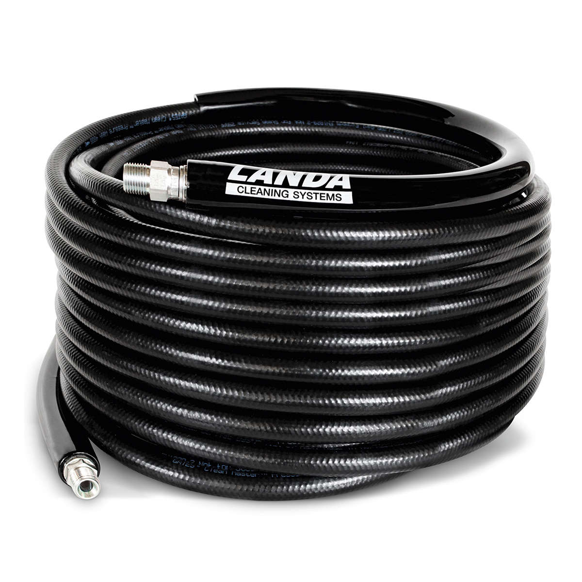 The Landa hose is built to exceed the EN1829-2 Standard and will provide superior abrasion resistance that will increase the life of the hose. Hose are rated up to 250° F and come with bend restrictors on both ends. Plus, the “bite-the-wire” coupling actually reaches the wire braid for never-slip retention, making them far superior to the compression fittings used on conventional hoses.