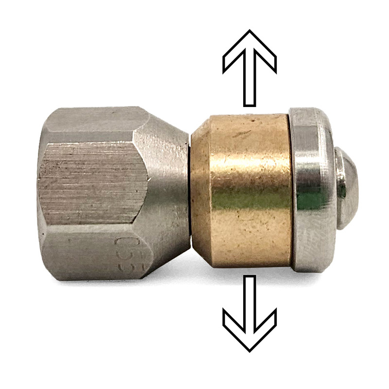 With a 1/4″ FPT, this rotating nozzle has corrosion resistant stainless steel construction and rated for use up to 4000 PSI. Attaches easily to 1/4″ high pressure hose and other pressure washer accessories.