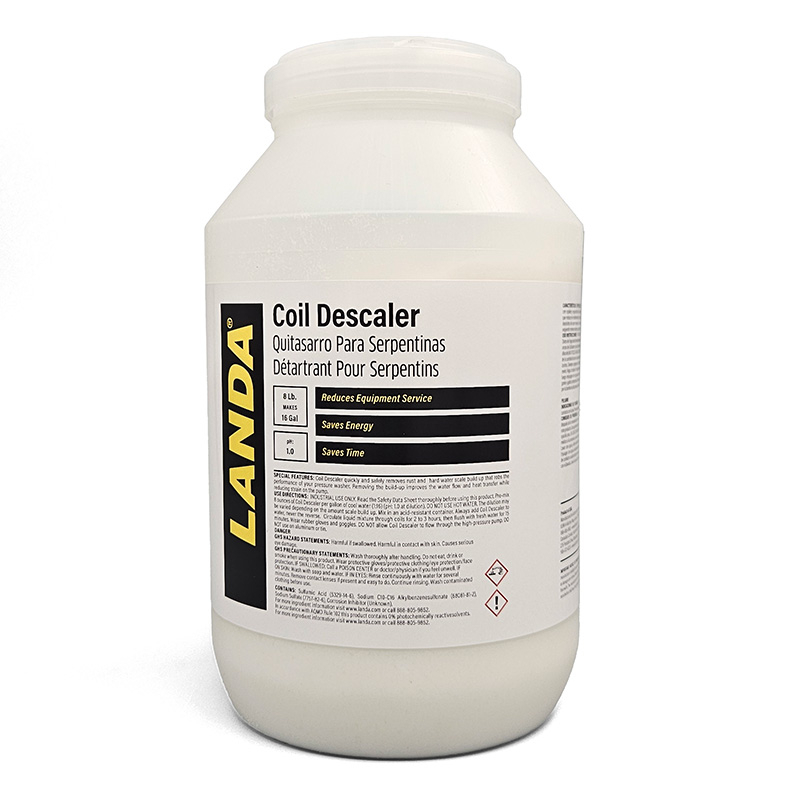 Coil Descaler quickly and safely removes tust and hard water scale build-up that robs the performance of yoru pressure washer. Removing the build-up improves the water flow and theat transfer while reducing strain on the pump.