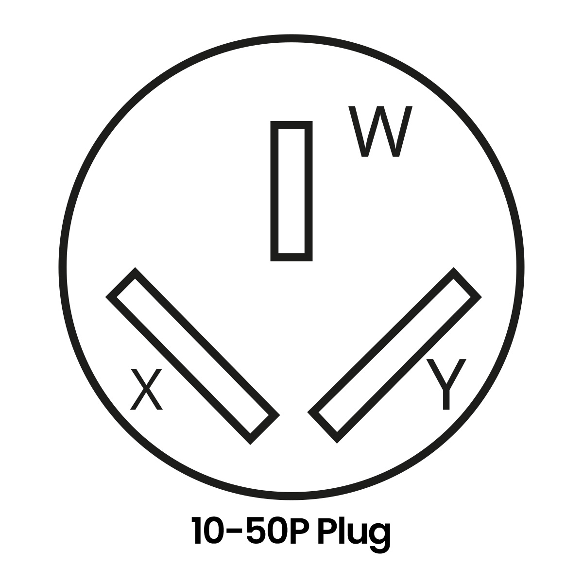This Heavy Duty Type 10/3 STW Adapter Cord is 1.5 ft. long and comes with a 10-50P Male plug and 6-30R Female receptacle.