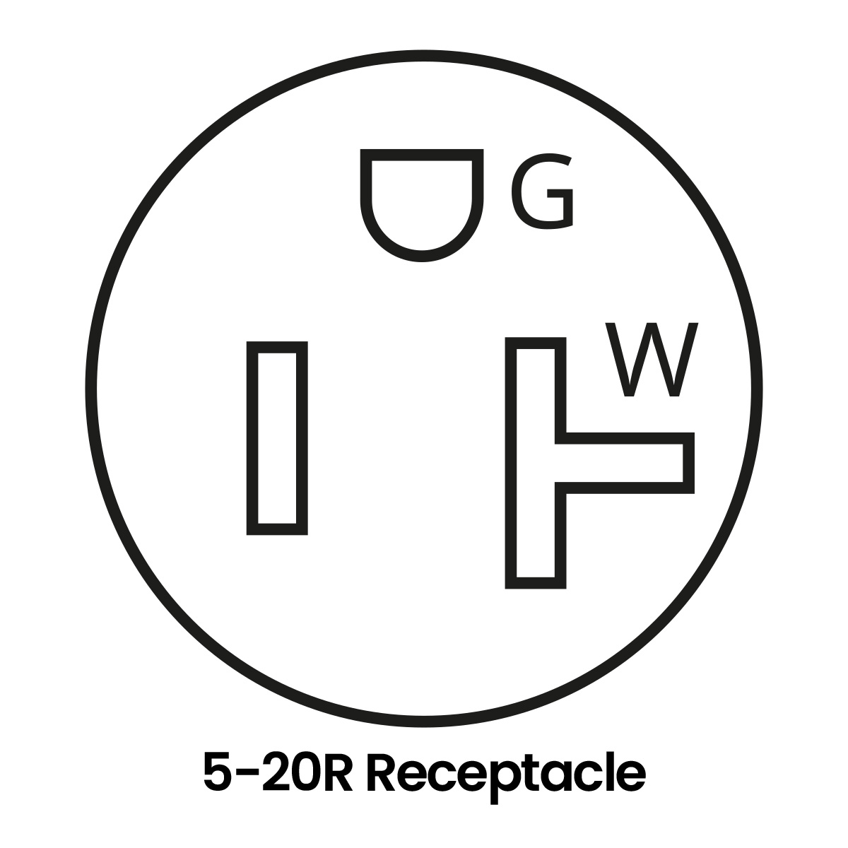 This Type 12/3 STW “Pigtail” Adapter Cord is 2 ft. long and comes with a 5-15P Male plug and 5-20R Female receptacle.