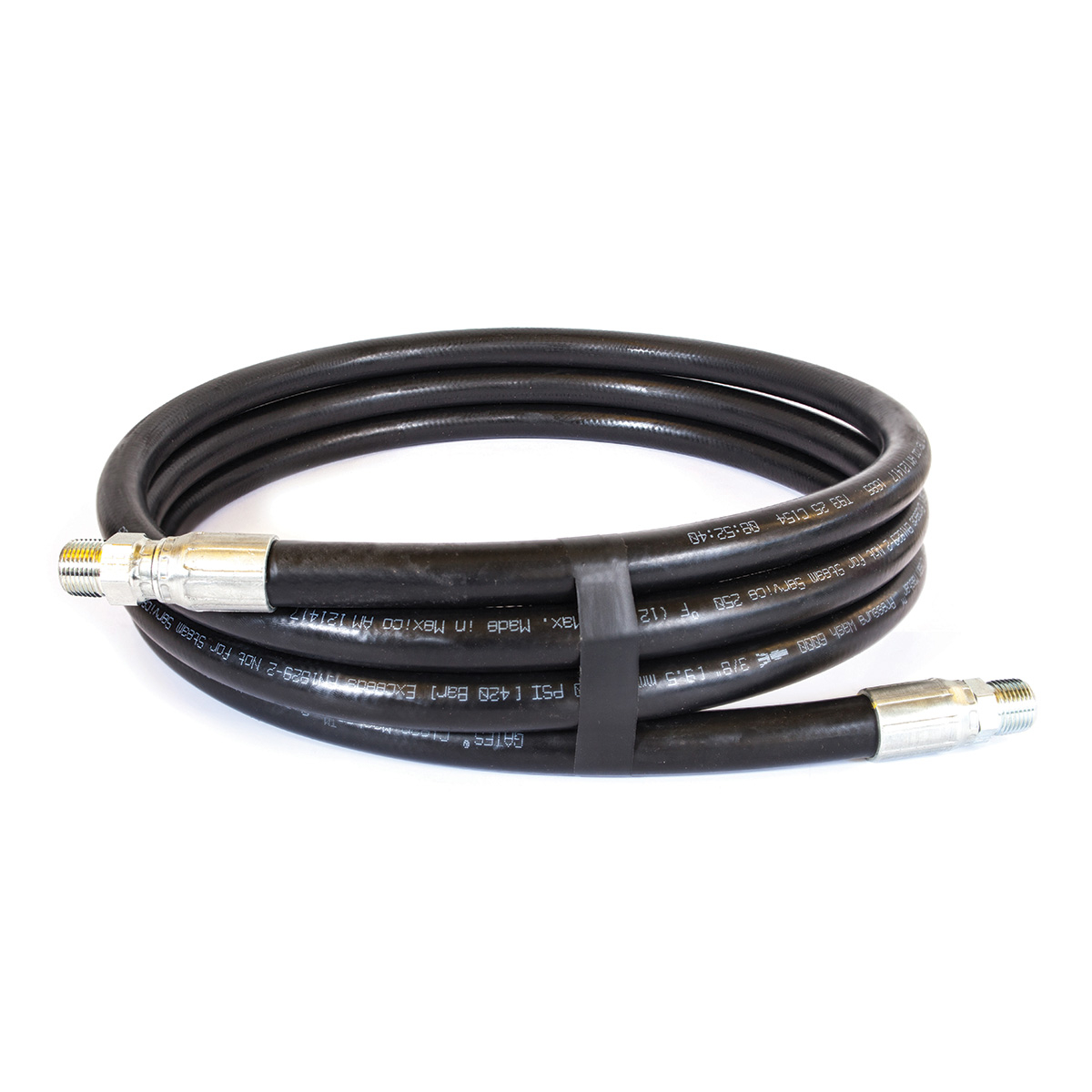 High Pressure Connector Hose (aka Jumper Hose) – 1-wire, 4000 PSI, comes standard with solid 3/8 inch MPT crimp fittings on both ends.