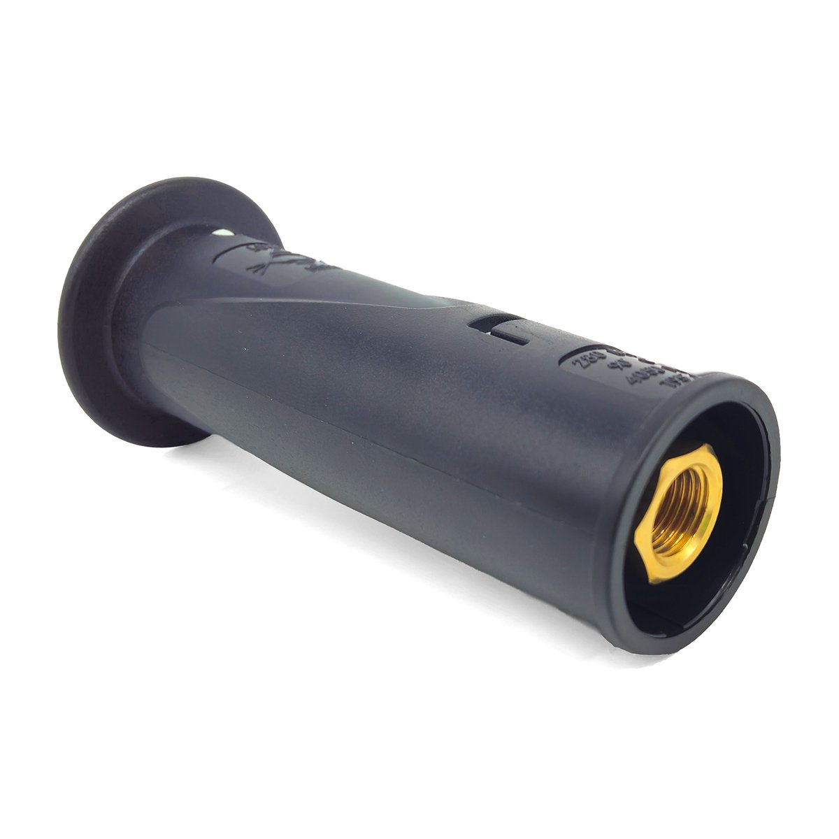This adjustable dual pressure nozzle easily adjusts from 0 degree to 80 degree spray pattern with a simple twist of the nozzle head. Change from high to low pressure by a simply push or pull of the nozzle body. No need to keep changing quick connect nozzles while pressure washing!