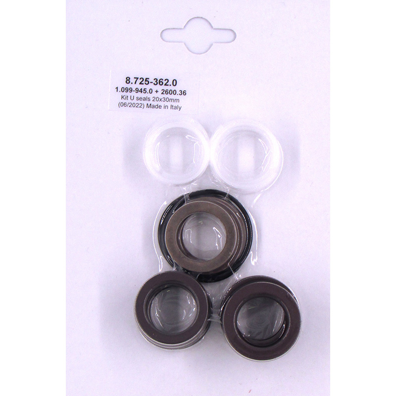 Included in this U Seal Kit are the following components: 3 high pressure U-Seals, 3 low pressure U-Seals, 3 Teflon support rings, 6 seal support backing rings and 3 O-rings.