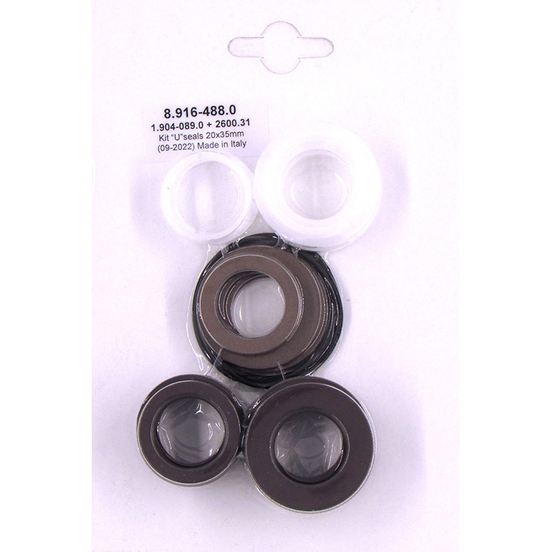 Included in this U Seal Kit are the following components: three (3) high pressure U-Seals, three (3) low pressure U-Seals, six (6) Teflon support rings, six (6) seal support backing rings and three (3) O-rings.