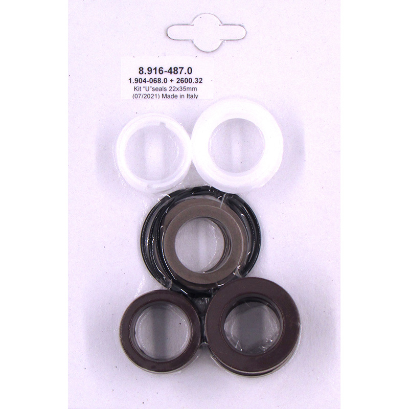 Included in this U Seal Kit are the following components: three (3) high pressure U-Seals, three (3) low pressure U-Seals, six (6) Teflon support rings, six (6) seal support backing rings and three (3) O-rings.