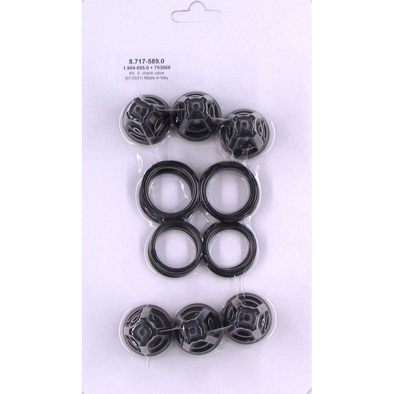 The 8.717-589.0 Pressure Washer Pump Valve Kit contains six (6) valves, six (6) valve o-rings and six (6) pump manifold bolt o-rings. One kit will service one pump.