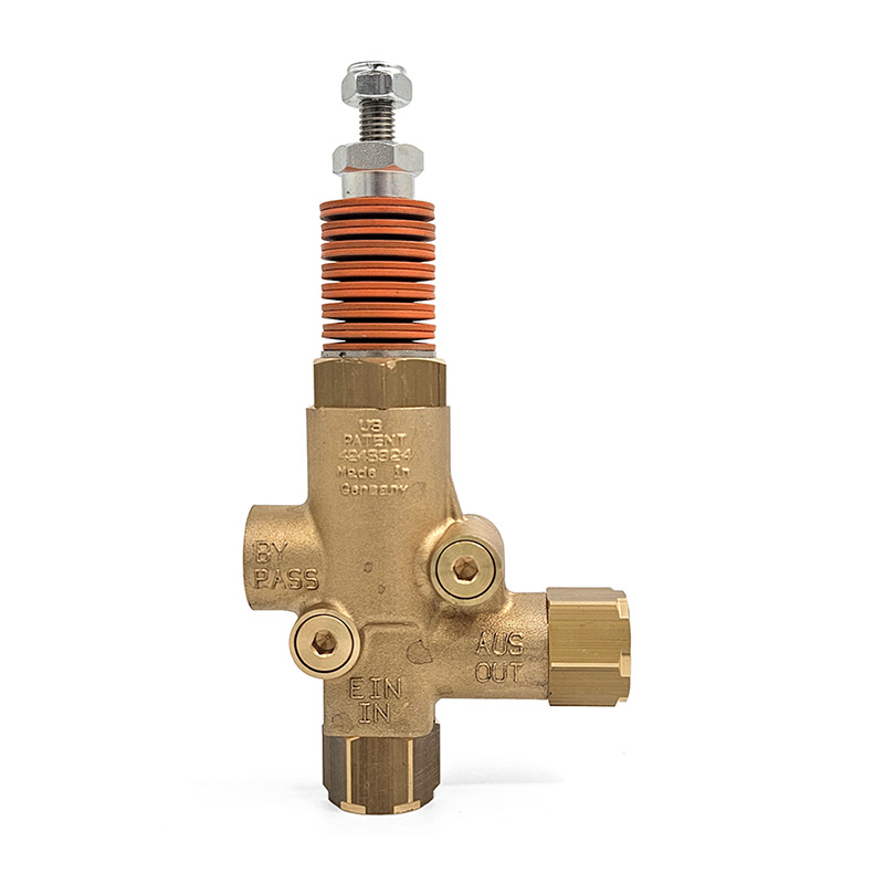 This Giant Pressure Actuated Unloader Valve features a forged-brass body and stainless steel internals with Bellville spring washers that minimize spikes. It is rated for 375-3000 PSI and 13.0 GPM.