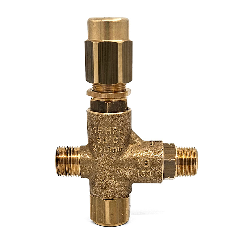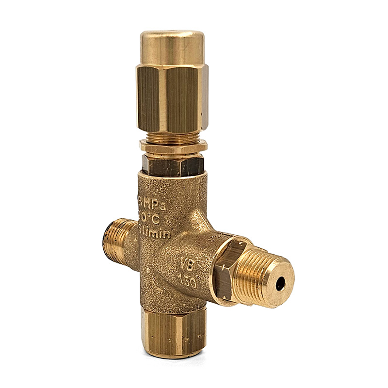 This VB130 Trapped Pressure Unloader Valve features a forged-bronze body with stainless steel plunger and valve seat. Rated for up 2600 PSI, it fits the General Pump 51 & 60 Series, Cat 2SF, and other pumps.