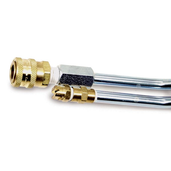Use this dual wand (aka Variable Pressure Wand / Variable Pressure Lance) use when both high and low pressures are needed. For example, spraying cleaning agents with low pressure through an injector valve and then cleaning with high pressure.